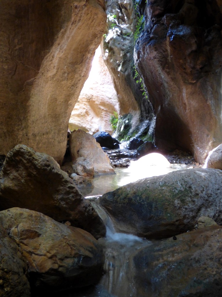 Algo también peculiar de este barranco, es el juego de luces que penetra en esta época del año, cuando el sol está más elevado, haciendo del paseo toda una experiencia.