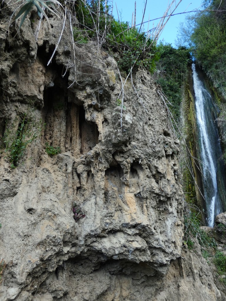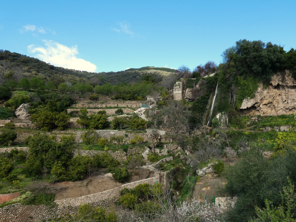En el transcurrir del arroyo, se pueden contemplar dos excepcionales saltos de agua de 20 metros de altura cada uno, rodeados de las propias huertas de cítricos o almendros, entre los extensos bosques de alcornoques, encinas, quejigos, madroños y castaños de la zona.