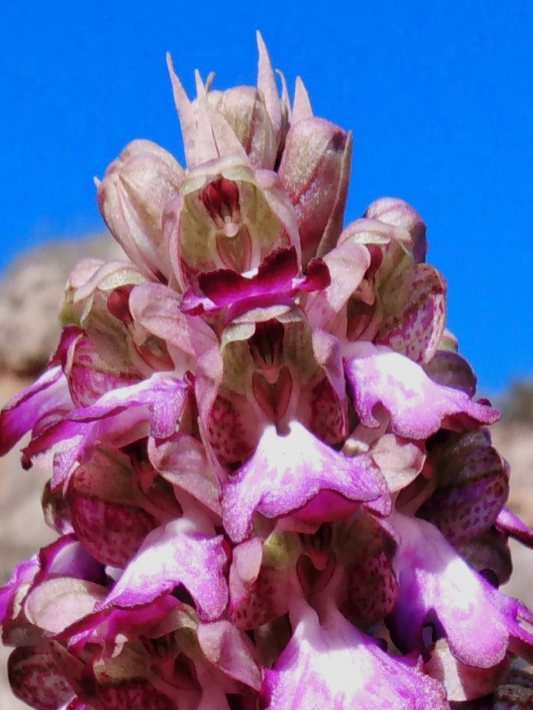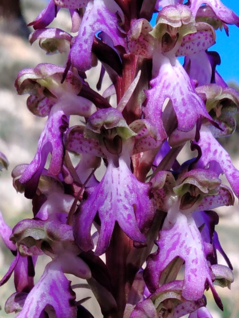 Si bien las orquídeas se caracterizan por su exuberancia y diversidad de formas y colorido que generalmente imitan e invitan a los insectos para acercarse a ellas, esta especie silvestre es de las más vistosas y espectaculares que podemos encontrar en la península ibérica. Crece en claros de bosques, pastizales o incluso al borde de caminos, siendo imposible que pase desapercibida precisamente por su gran tamaño, ya que no es extraño que sobrepase el medio metro de altura.