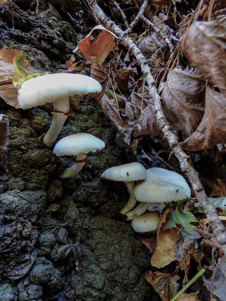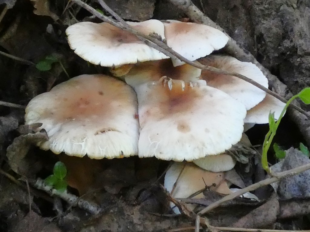 Otra parecido posible es con Hypholoma fasciculare, pero ésta solamente crece en las coníferas, tiene un pie más delgado en relación al sombrero y las láminas son entre amarillentas y verdosas.