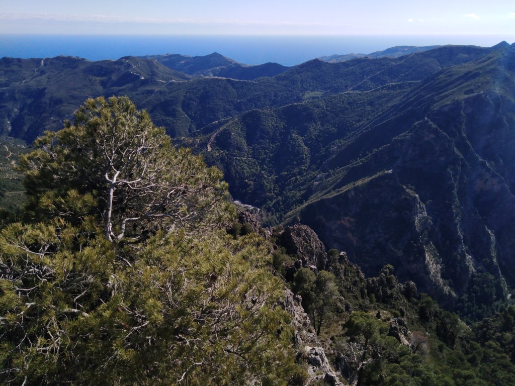 La amplitud altitudinal, que abarca desde la misma costa, hasta los 2066 msnm del pico de La Maroma, sumado a la influencia tanto de la costa tropical como de la cercanía del macizo de Sierra Nevada, confluyen para dotar al parque de una diversidad de flora sobresaliente. Si bien los pinares marcan la pauta, encontrando desde el pino carrasco, hasta el pino silvestre, además del salgareño, el negral o el piñonero, también habitan cercanos a las cumbres el quejigo o el endémico acer granatense. La sierra de Tejeda recibe su nombre, además, del ya menos abundante tejo, que tiene la relevancia de ser la tejeda más meridional de la península ibérica.