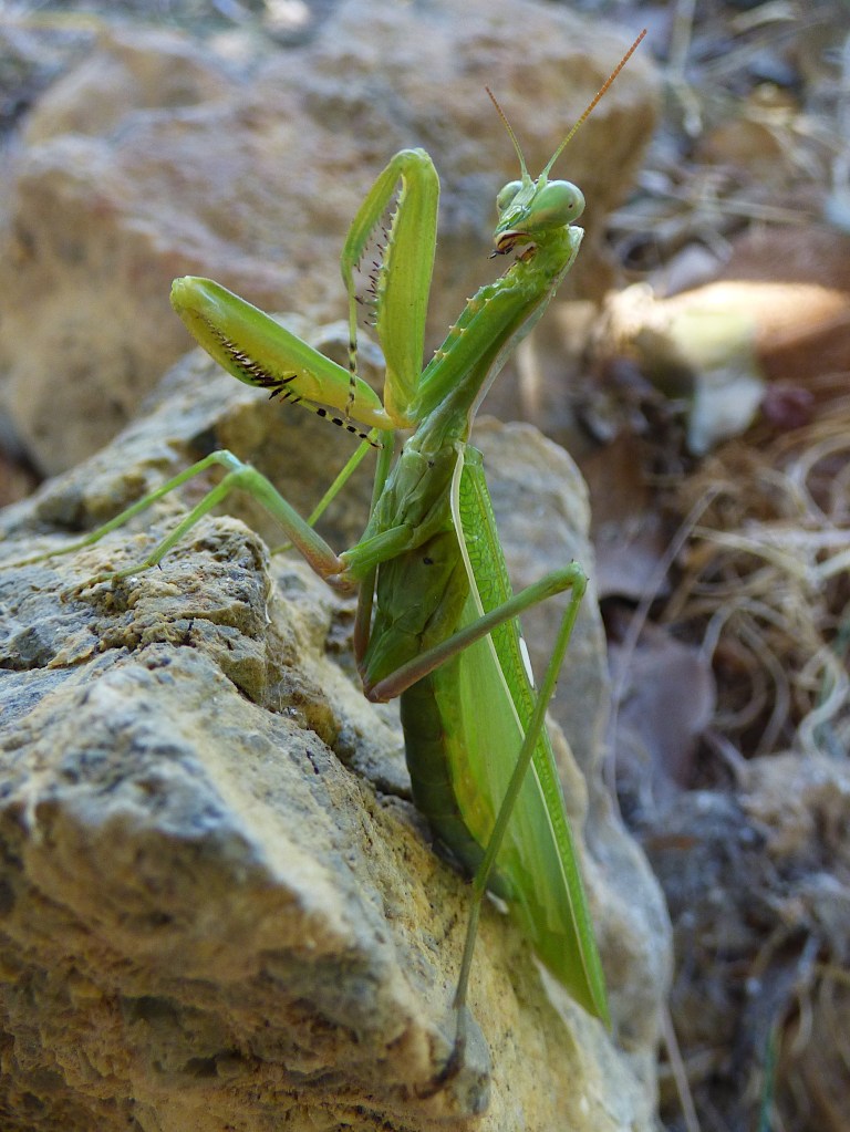 La mantis religiosa es una consumada depredadora, acechando a sus presas en la conocida posición con las patas delanteras encogidas, en la que parece que está rezando y que da nombre a la especie.
